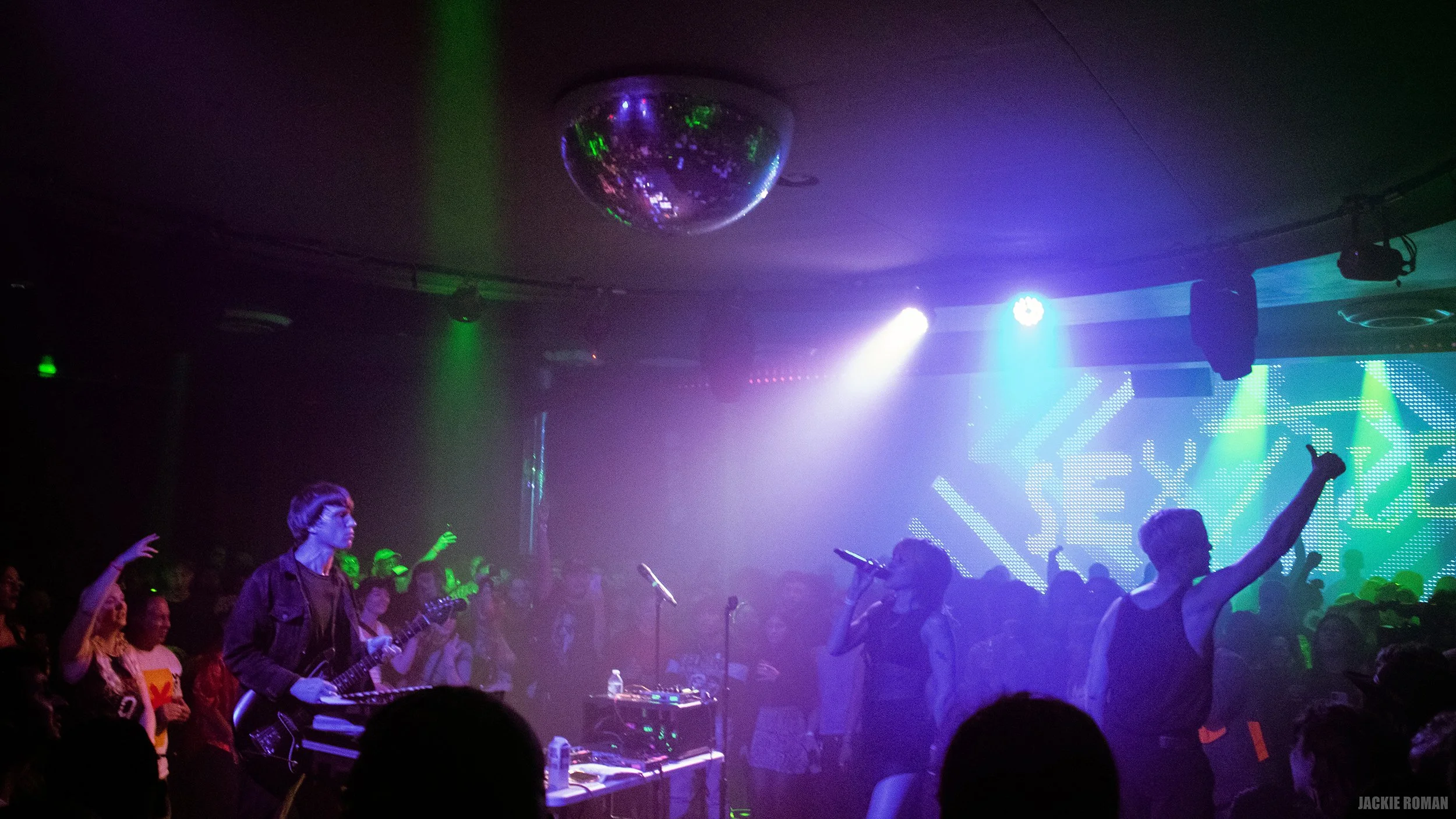 Right: Sextile performing at Xanadu Roller Rink, August 8th, 2024 — Brooklyn